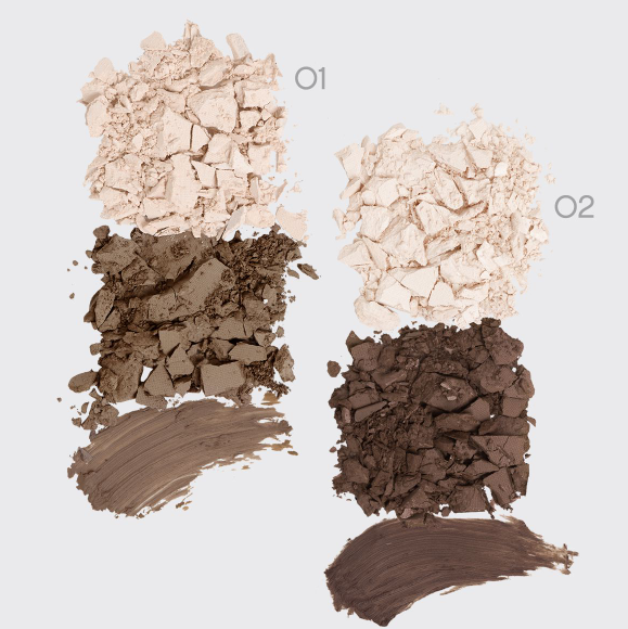 Три универсальных оттенка в каждом наборе: тени для придания цвета и создания желаемой формы, цветной воск для фиксации результата и хайлайтер, подсвечивающий изгиб под бровью.
