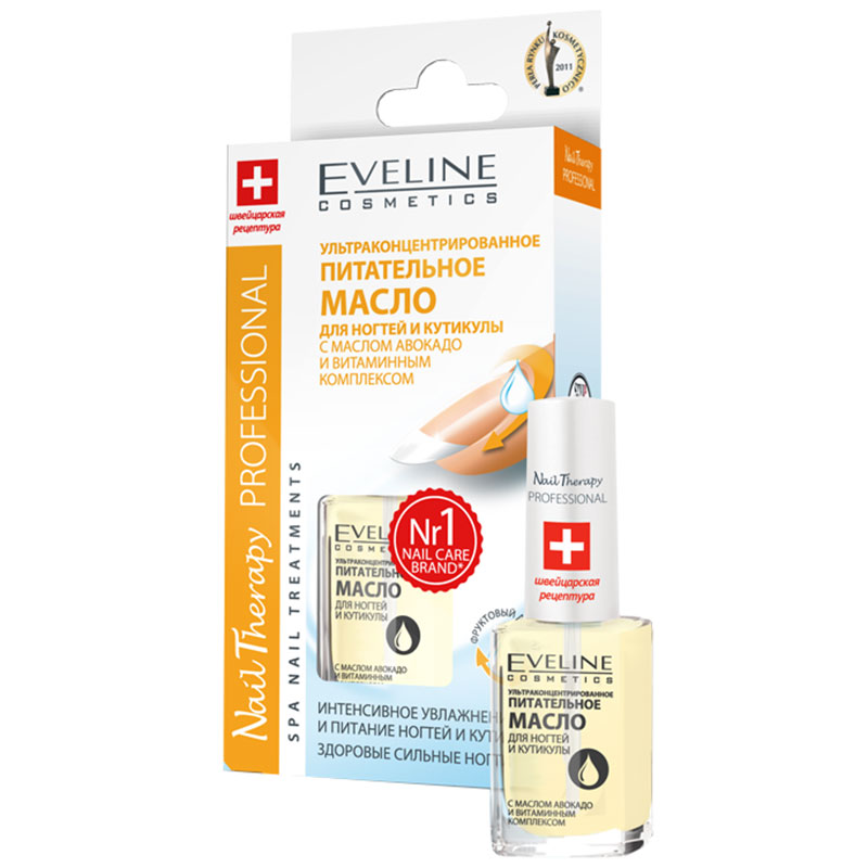 Нежное питательное, ультраконцентрированное масло для ногтей и кутикулы Nail Therapy Professional от Эвелин, смягчит кутикулу и восстановит ногтевую пластину уже за несколько применений. Масло обогащено большим количеством витаминов группы А, В1, В2, Е, С, F, содержит масло миндаля, авокадо.