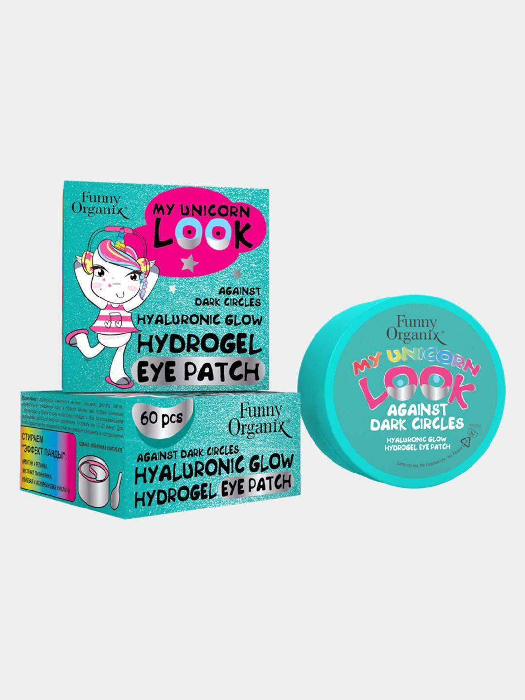 Гидрогелевые глиттер-патчи для глаз Funny Organix Гиалуроновые 60шт