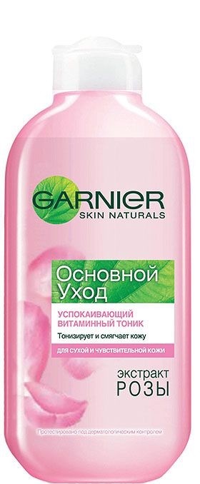 Тоник для лица GARNIER Основной уход розовая вода успокаивающий 200мл