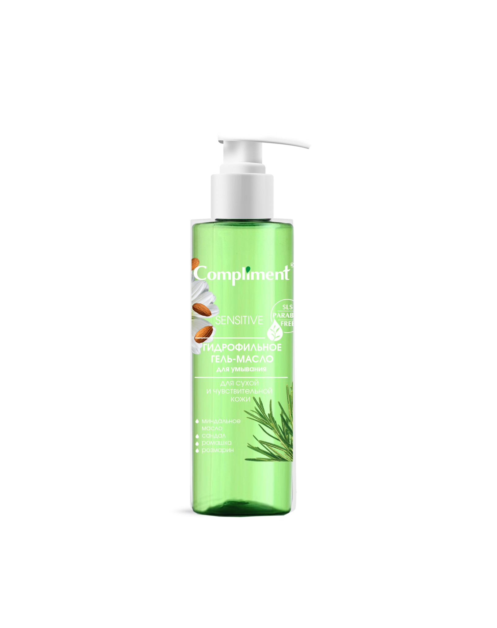Гидрофильное гель-масло Комплимент для сухой и чувствительной кожи поддерживает рН-баланс, не вызывает раздражения, способствует очищению и сужению пор. Благодаря наличию в составе миндального масла предотвращает сухость и «стянутость» кожи после умывания, поскольку содержит достаточное количество насыщенных жиров для предотвращения потери влаги. Гидрофильное гель-масло делает кожу чистой, мягкой, гладкой и свежей. Оно не оставляет жирного блеска или липкую пленку, не забивает поры.
