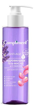 Гидрофильное гель-масло Комплимент для умывания и снятия макияжа ANTI-AGE деликатно, тщательно и нежно очищает кожу лица, не нарушает естественный защитный слой, не сушит кожу, предотвращает преждевременное появление морщин. Благодаря входящим в состав ценнейшим маслам жожоба и арганы, экстрактам розы и лесного ореха, масло борется с возрастными изменениями, способствует восстановлению эластичности кожи. Гидрофильное гель-масло делает кожу чистой, мягкой, гладкой и свежей. Оно не оставляет жирного блеска или липкую пленку, не забивает поры.