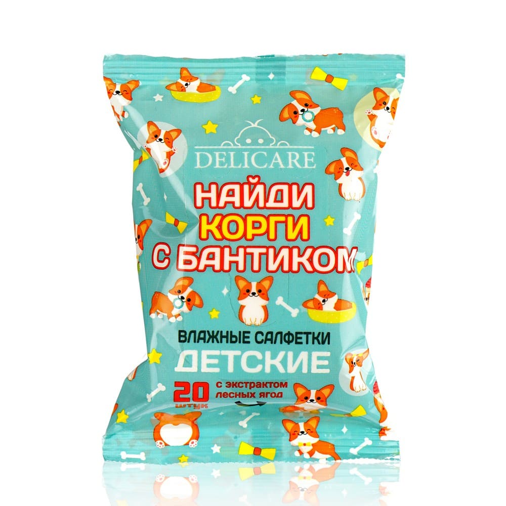Влажные салфетки Delicare Baby Корги лесные ягоды 20шт